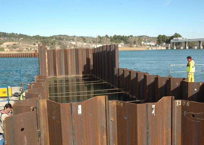• Creación de un recinto protegido, con agua quieta e independiente del agua fluyente del Ebro, de forma que durante la obra pueda mantenerse el flujo del río a modo de canal por la margen izquierda del embalse y que, en caso de producirse alguna incidencia en el proceso, ésta se mantenga confinada y no envíe contaminación hacia agua abajo.